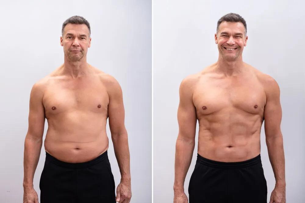 A: Many men notice improvements in energy and mood within weeks. Body composition changes often appear after a few months of consistent therapy and training.